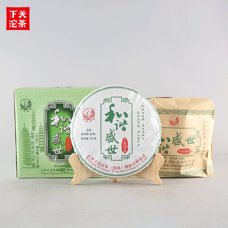 357克紙袋提盒裝和諧盛世餅茶 普洱茶(生茶)2021