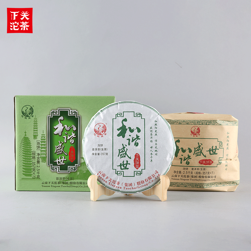 357克紙袋提盒裝和諧盛世下關餅茶 普洱茶(生茶)2022