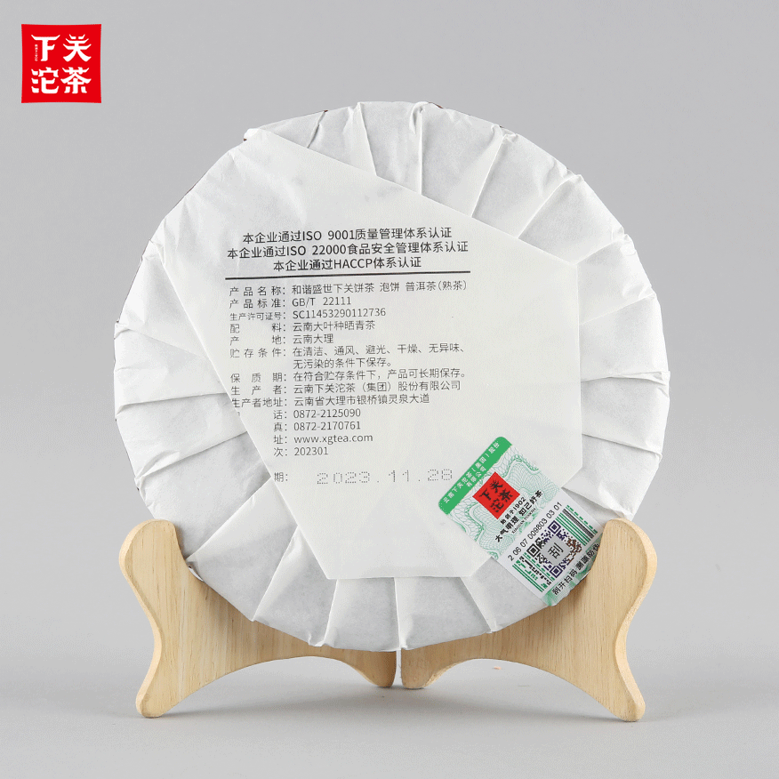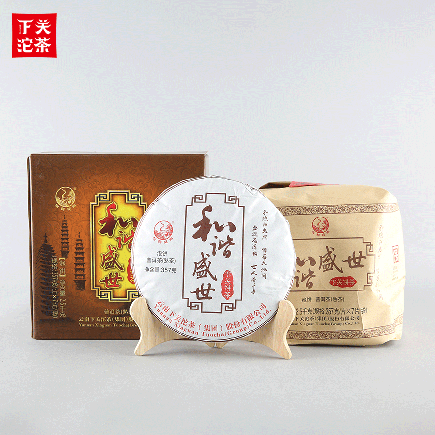 357克紙袋提盒裝和諧盛世下關餅茶 普洱茶(熟茶)2023