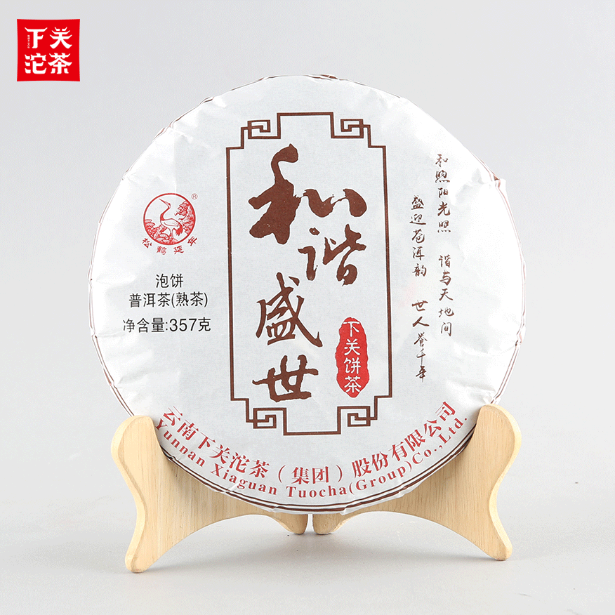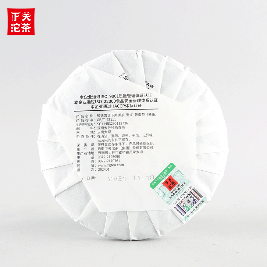 357克紙袋提盒裝和諧盛世下關餅茶泡餅 普洱茶(熟茶)2024
