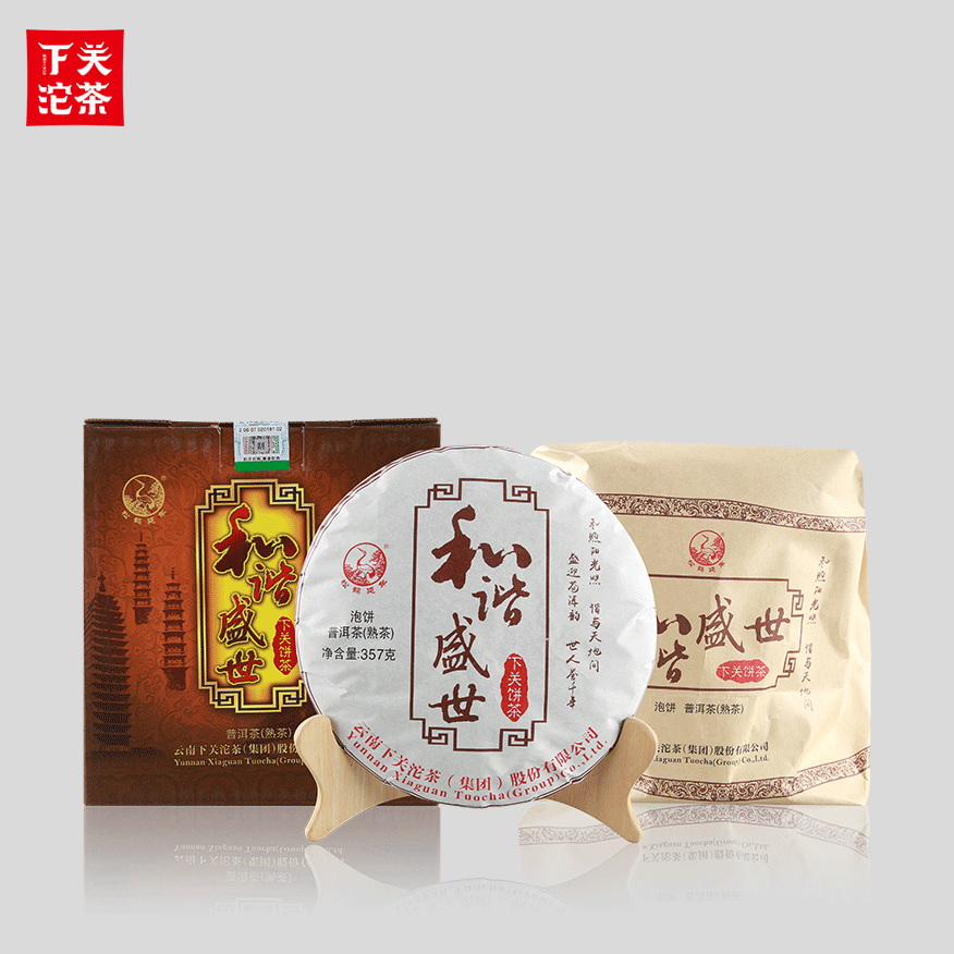 357克紙袋提盒裝和諧盛世下關(guān)餅茶(泡餅) 普洱茶(熟茶)2025