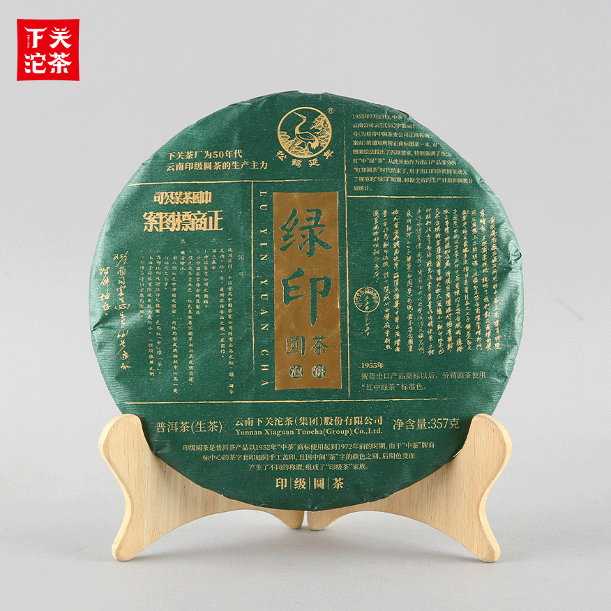 357克筍葉竹籃編織袋紙箱裝綠印圓茶 普洱茶(生茶)2023
