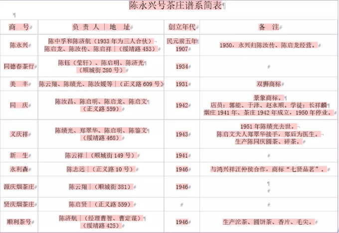 陳永興號茶莊譜系簡表
