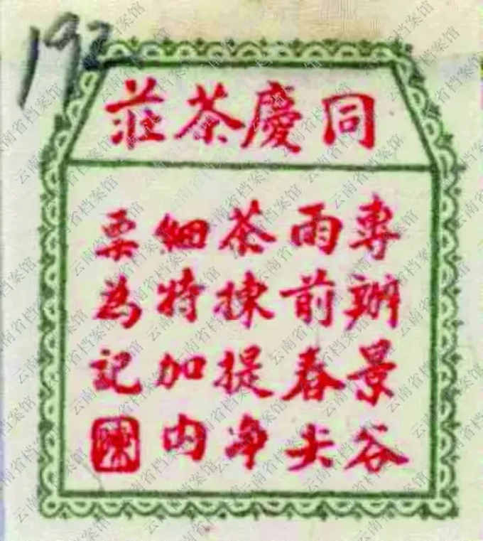 不過,這兩件事給陳家留下了同慶情結和茶行情結,在兒孫繁衍分家后,他們家族的一支干脆在1942年4月成立云南同慶茶莊,(后又改名同慶茶行,同慶老鋪等,由陳瑩軒長子陳汝昌負責經營)。