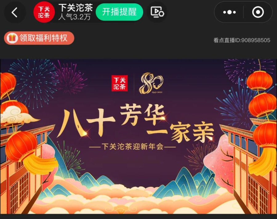 臘月二十四,南方小年,在這一片喜慶熱烈中,豐富多彩的年會文藝演出在下關(guān)沱茶騰訊直播間上演,當(dāng)天線上總觀看高達3.2w人次。