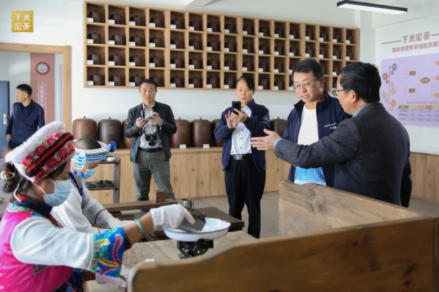 下關(guān)沱茶集團(tuán)公司杜發(fā)源副總經(jīng)理帶領(lǐng)中國工程院院士及專家團(tuán)隊(duì)參觀下關(guān)沱茶館及中國(下關(guān))沱茶研究院。參觀過程中,杜副總為嘉賓介紹了公司生產(chǎn)經(jīng)營及銀橋新廠區(qū)建設(shè)情況,細(xì)致講解了下關(guān)沱茶館《百年華章》《關(guān)茶匠心》《關(guān)茶珍檔》《百年醇香》等展陳內(nèi)容。