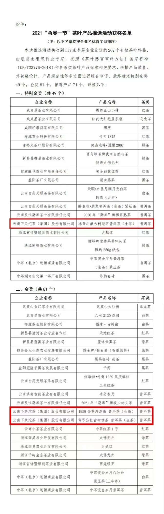 下關沱茶斬獲2021北京“兩展一節”雙料“金獎”!
