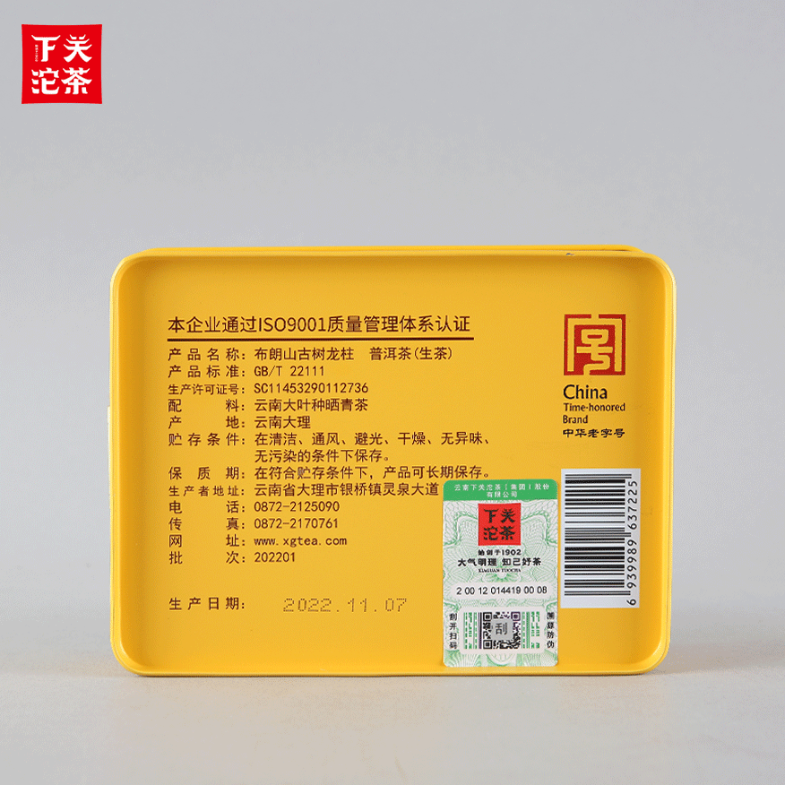 96克鐵盒裝布朗山古樹龍柱 普洱茶(生茶)2022